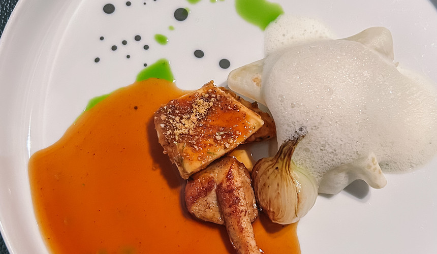 Een gewaagde combinatie die perfect uitpakt. De zilte frisheid van de oester botst nergens met de zachte, rijke kalfstong, maar vormt net een verrassend duo. De beurre blanc voegt romigheid toe, terwijl de pickles voor een subtiele zuurtegraad zorgen die alles mooi opfrist.
